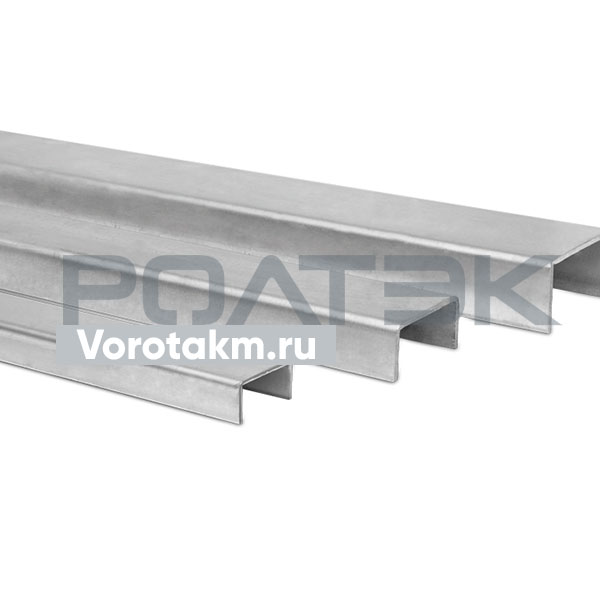 Швеллер крепится на нижний торец створки подвесных ворот. Используется совместно с ограничителями или роликами анкерными для предотвращения перемещения створки ворот под влиянием боковых усилий (например, ветровой нагрузки).